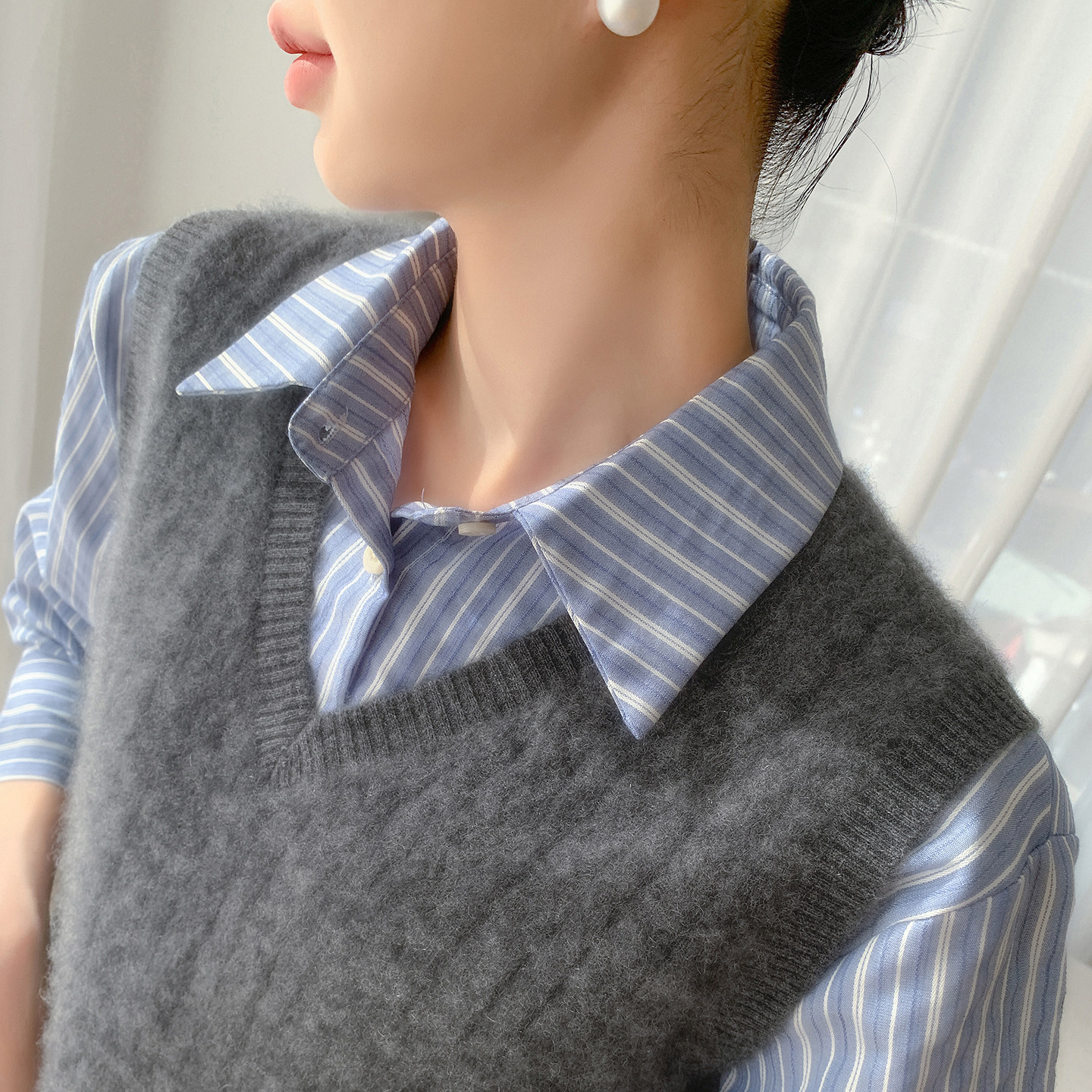 100%纯山羊绒马甲女V领无袖拉绒毛衣背心宽松羊毛衫叠穿坎肩上衣