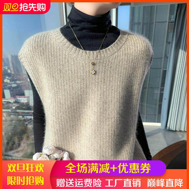 100%纯羊毛马甲女圆领加厚针织无袖毛衣背心宽松羊绒叠穿坎肩上衣