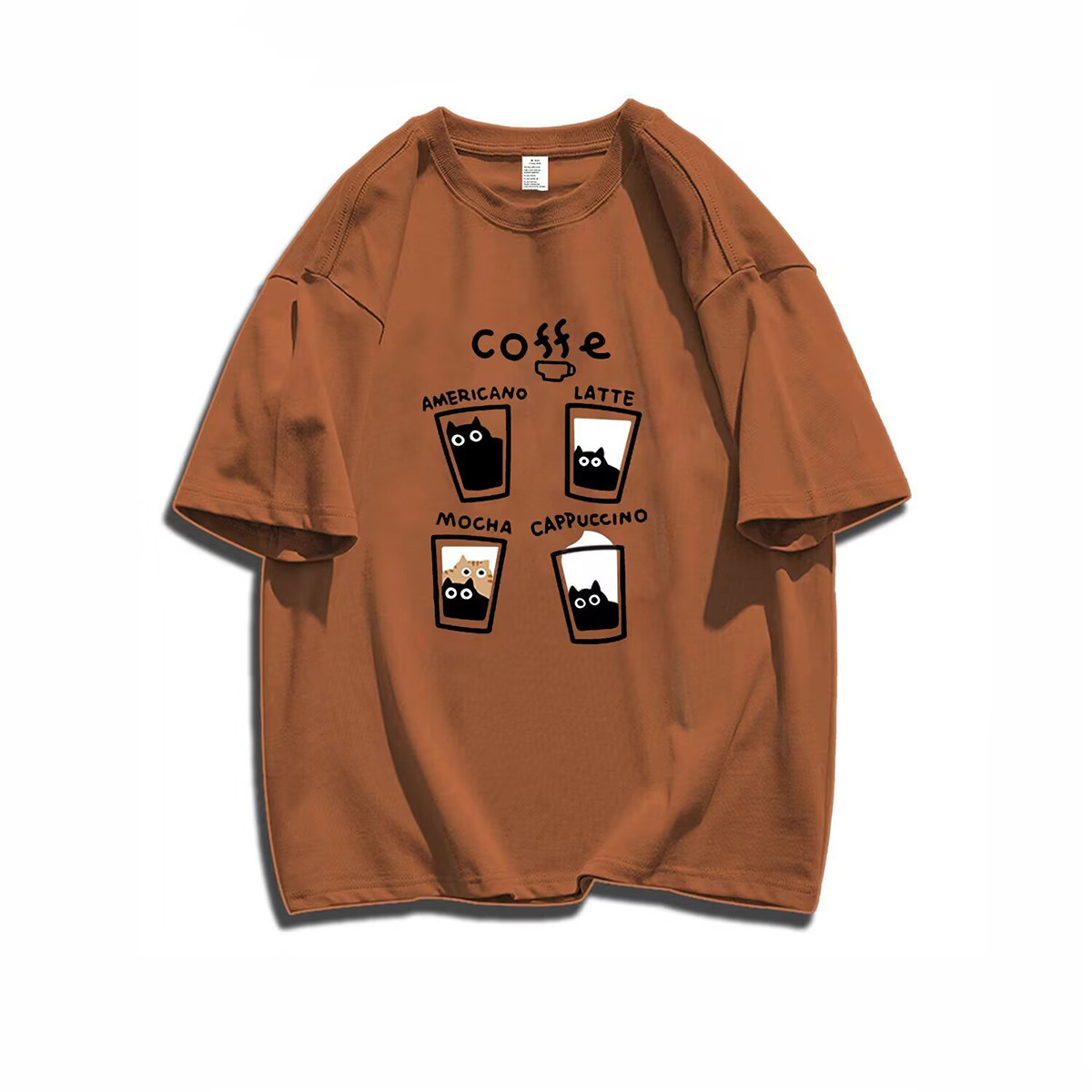 重磅纯棉韩版趣味猫咖啡印花t恤短袖情侣装夏季ins休闲潮牌上衣男