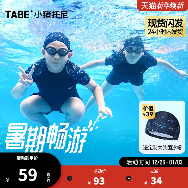 小猪托尼胖童男童泳衣中大童儿童泳裤男孩女童游泳衣套装男青少年