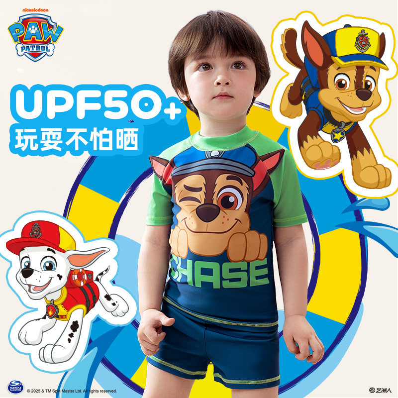 汪汪队男童泳衣夏季男孩2025新款海边儿童游泳衣A类抗菌分体泳衣