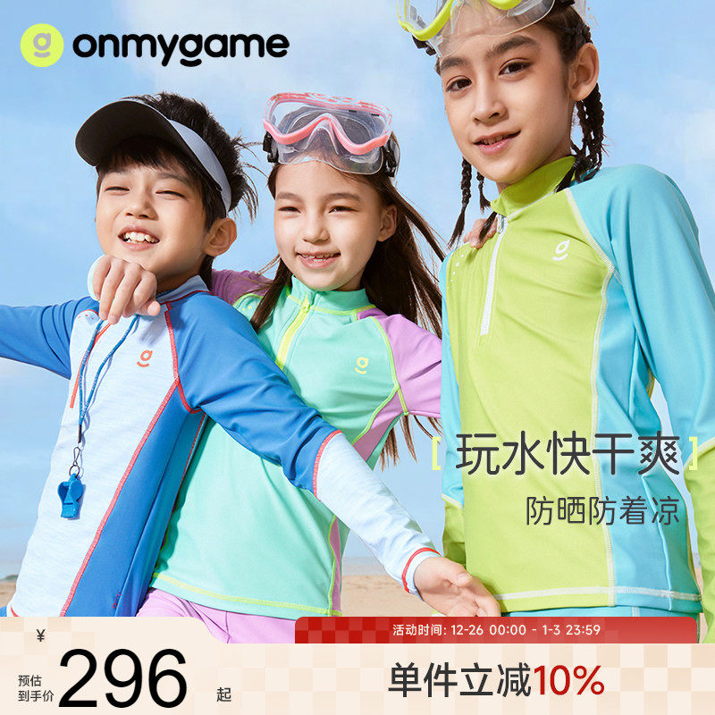 onmygame女童泳衣男童泳衣裤夏季儿童泳衣防晒分体套装抗氯速干
