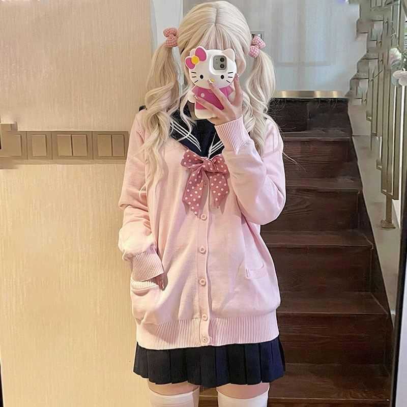 日系jk制服毛衣针织粉色开衫外套女百搭长袖软妹校供学院风校供感