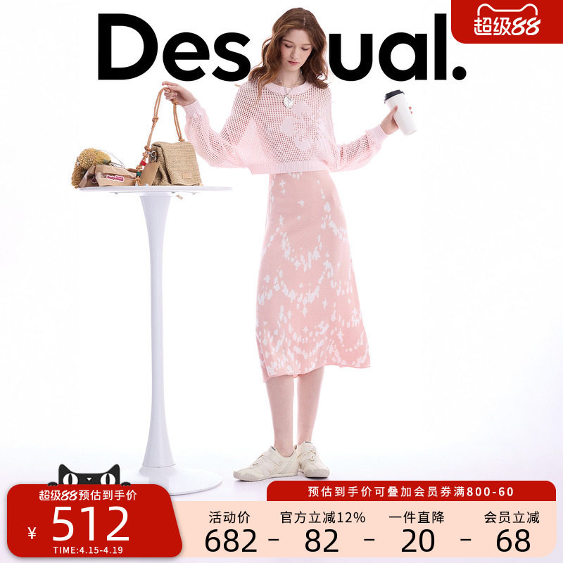 Desigual26春夏新品粉色海浪提花吊带针织衫两件套连衣裙