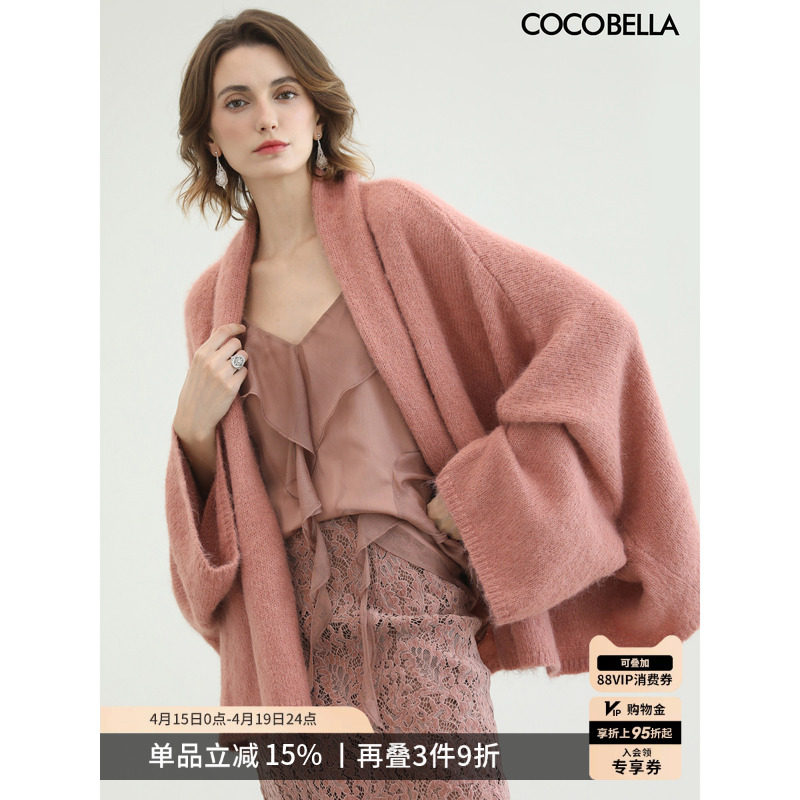 COCOBELLA温柔气质粉色针织衫开衫女设计感毛衣通勤外套MZ3220-2