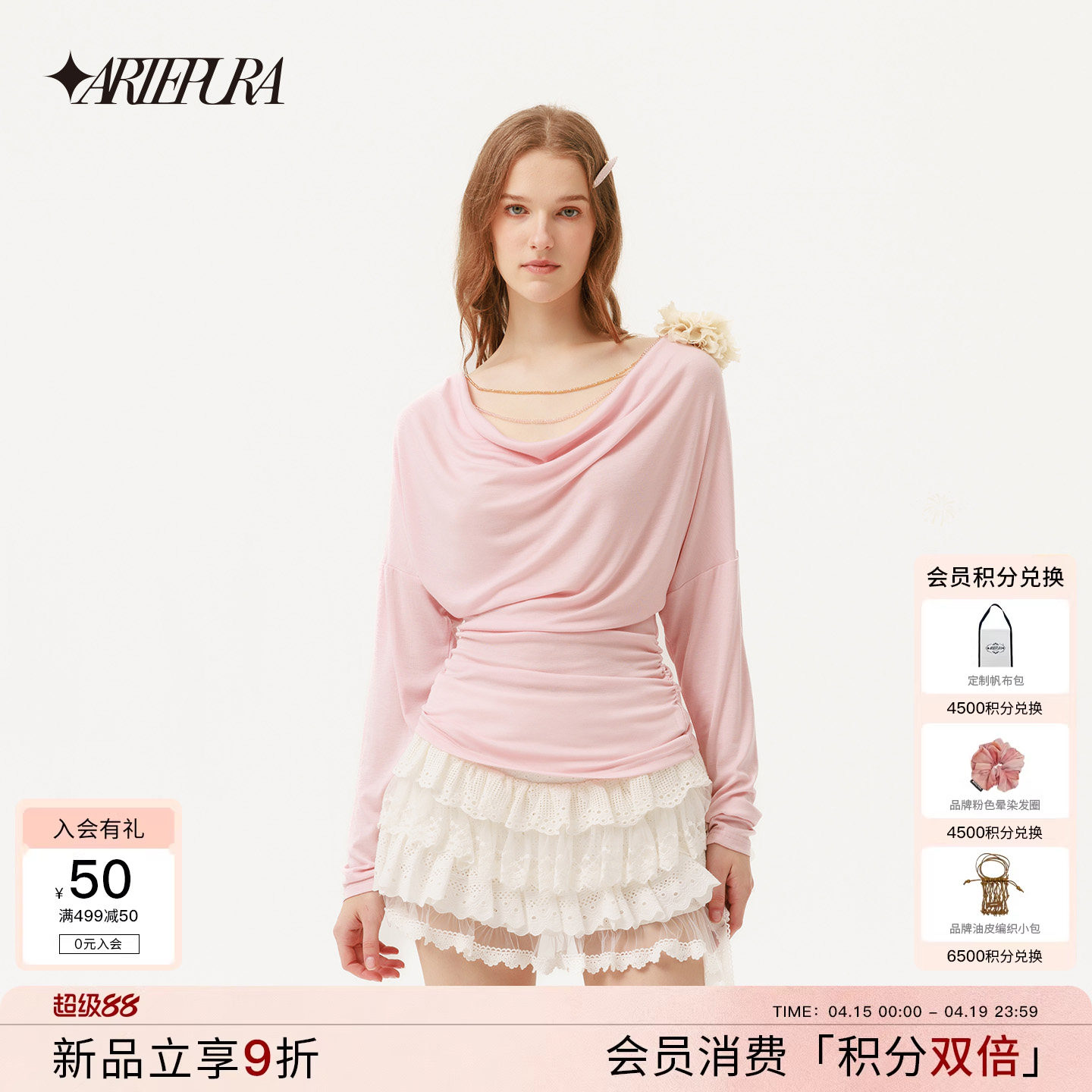 【李雪琴同款】ARTE PURA26春夏新款粉色荡领针织衫女多巴胺上衣
