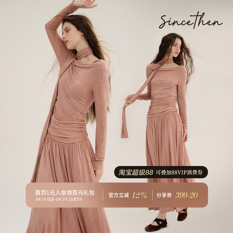 从那以后设计感连衣裙法式针织裙春季穿搭长袖裙子粉色礼服长裙女