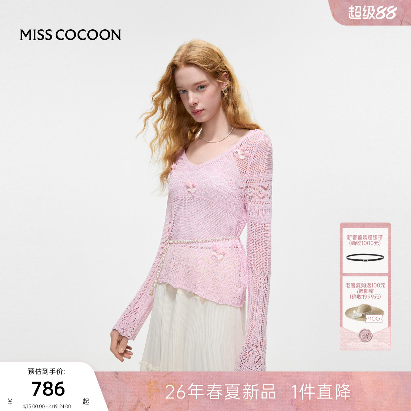MISSCOCOON可可尼镂空V领上衣女2026夏季新款慵懒风粉色毛针织衫