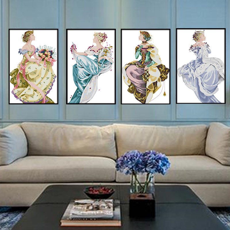蒙娜丽莎十字绣春夏秋冬四联画2025新款线绣客厅小幅简单卧室小件