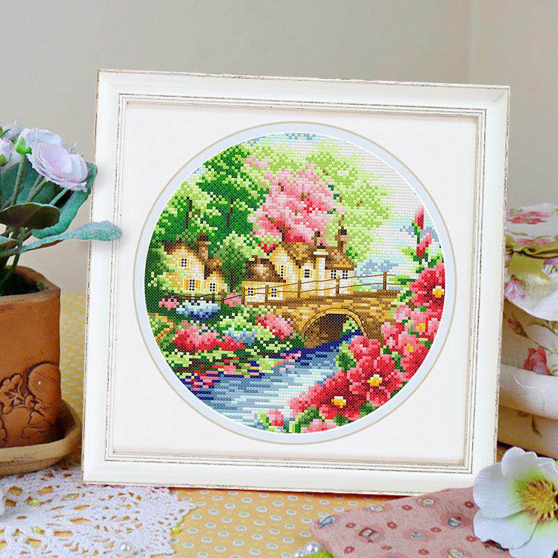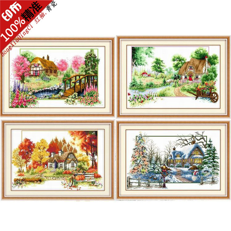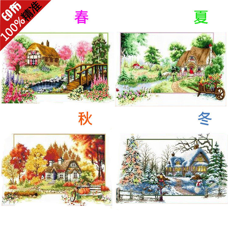 纯手工绣好的十字绣成品新款四季之美春之娇春夏秋冬花园小屋家园