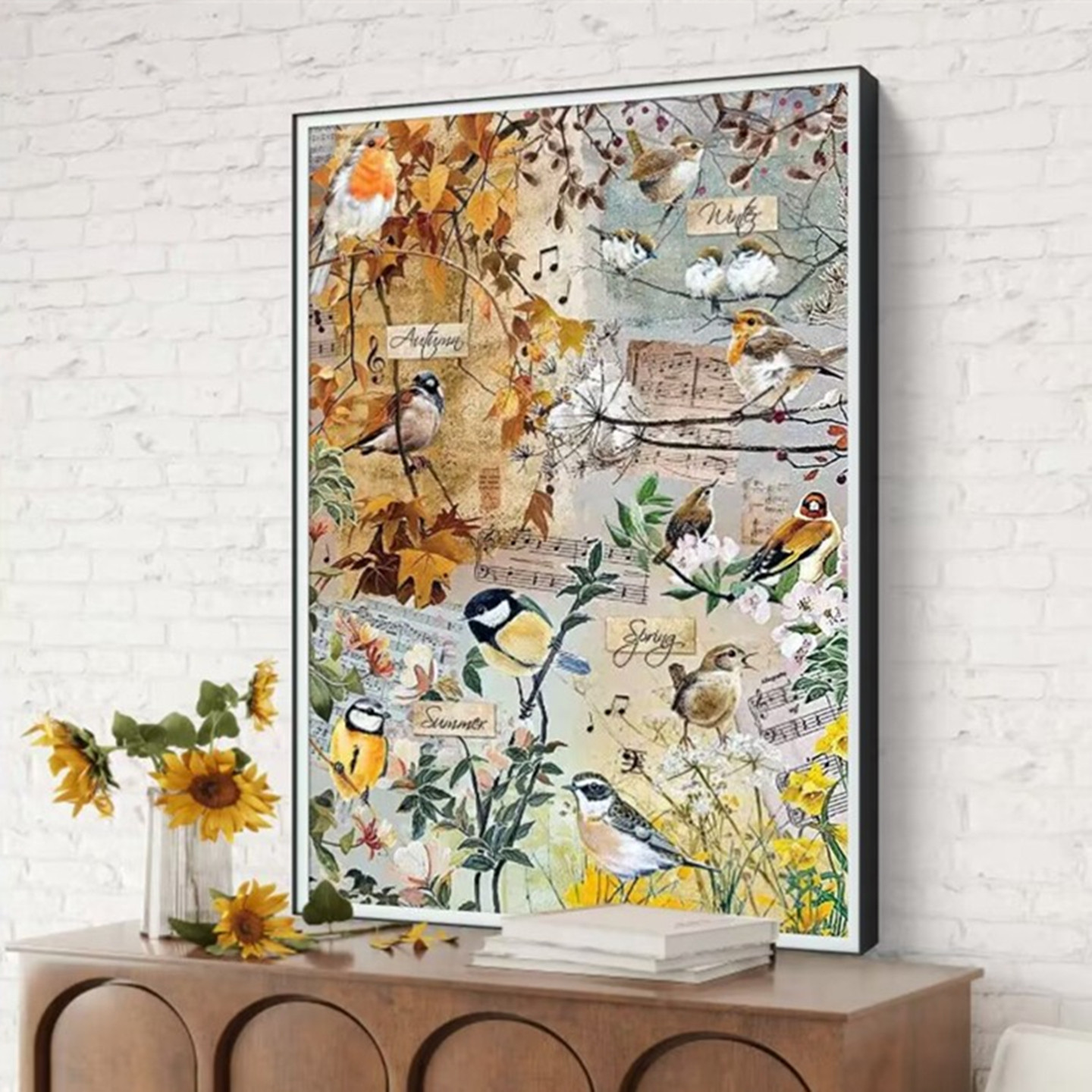 diy春夏秋冬四季乐谱风景小鸟钻石画方圆钻手工贴钻画十字绣新款