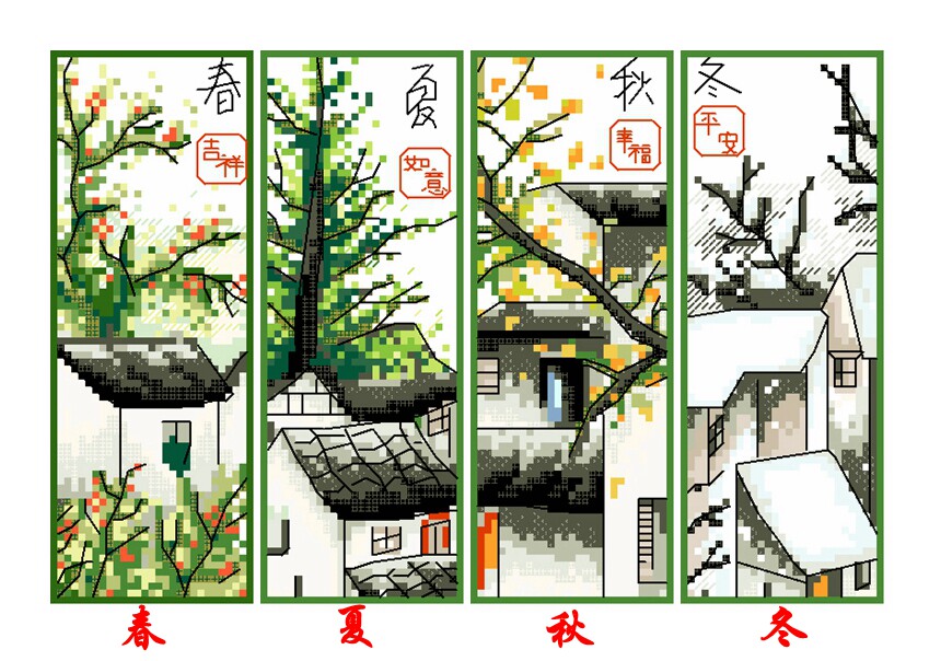 春夏秋冬四季十字绣江南水乡风景竖版玄关小幅图中式客厅刺绣挂画