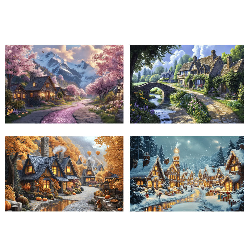原创欧洲小镇春夏秋冬十字绣2026年新款高级客厅大气风景手工diy