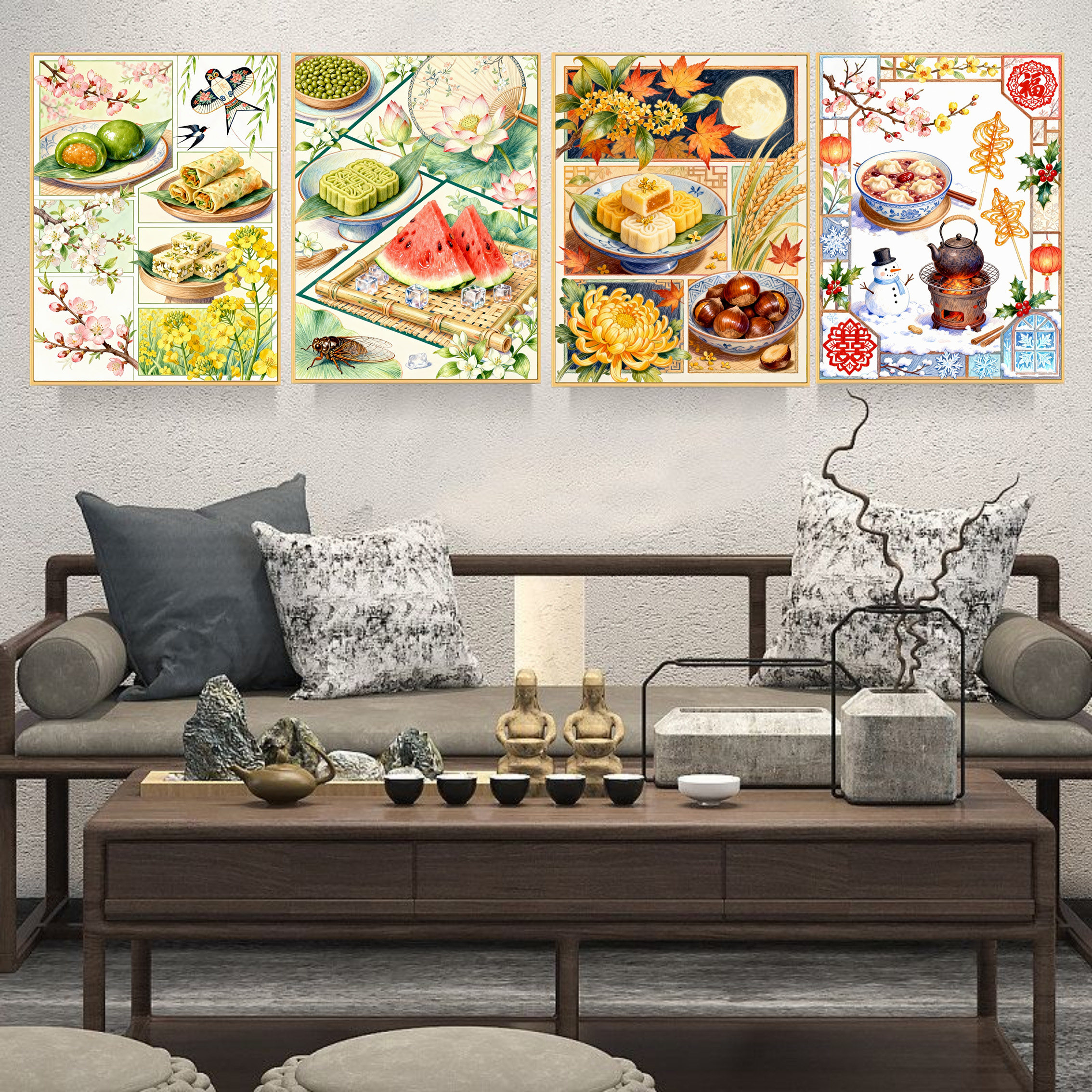 原创版权春夏秋冬清新四季美食十字绣套件客厅装饰画2026新款挂画