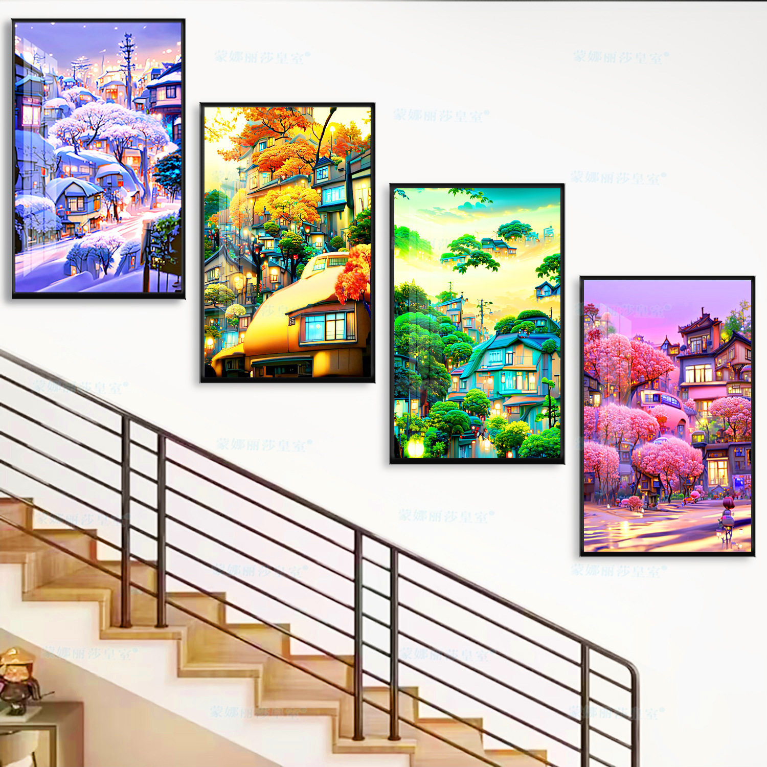 2026新款带框钻石画风景春夏秋冬客厅卧室送框钻石绣点贴钻十字绣