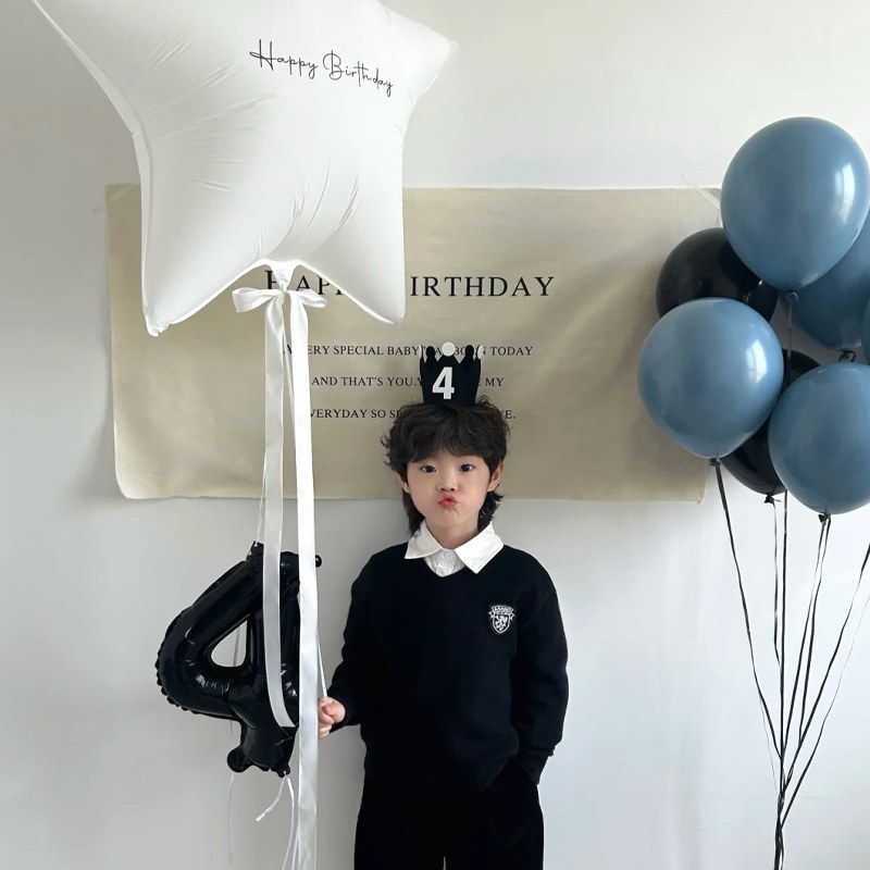 32寸白色五角星生日气球4岁男孩简约场景布置皇冠生日帽背景挂布
