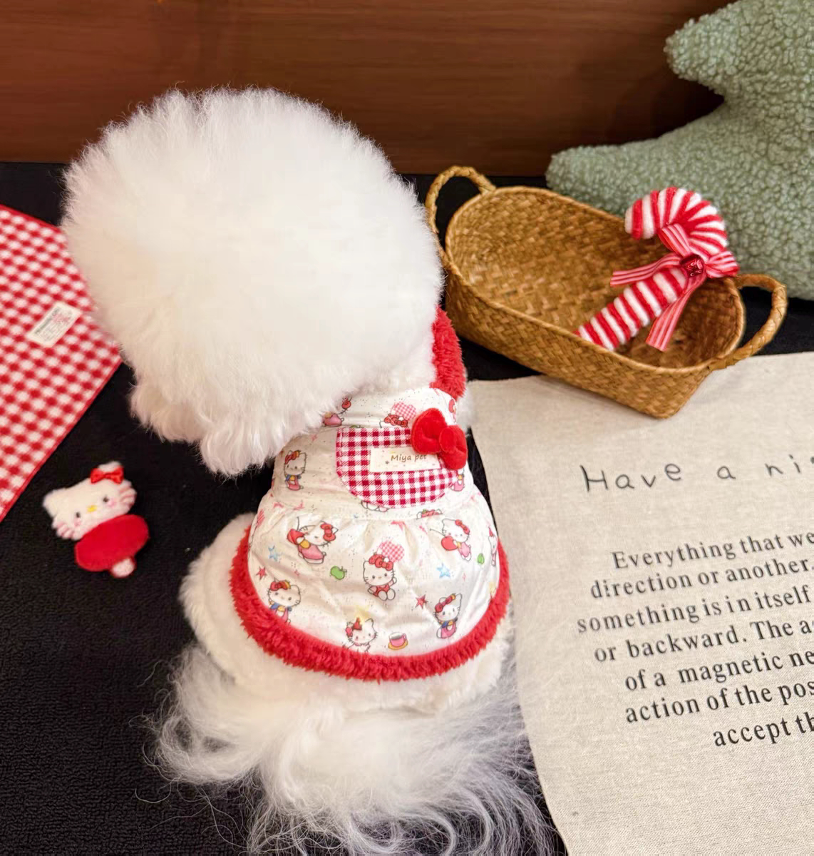 新年可爱背带裙格子kt猫宠物衣服纯棉加绒猫咪狗狗冬季保暖背心