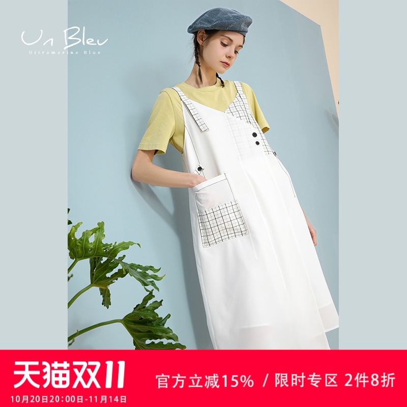 背带裙夏季女新款设计感小众黑白色小个子宽松格子拼接吊带连衣裙