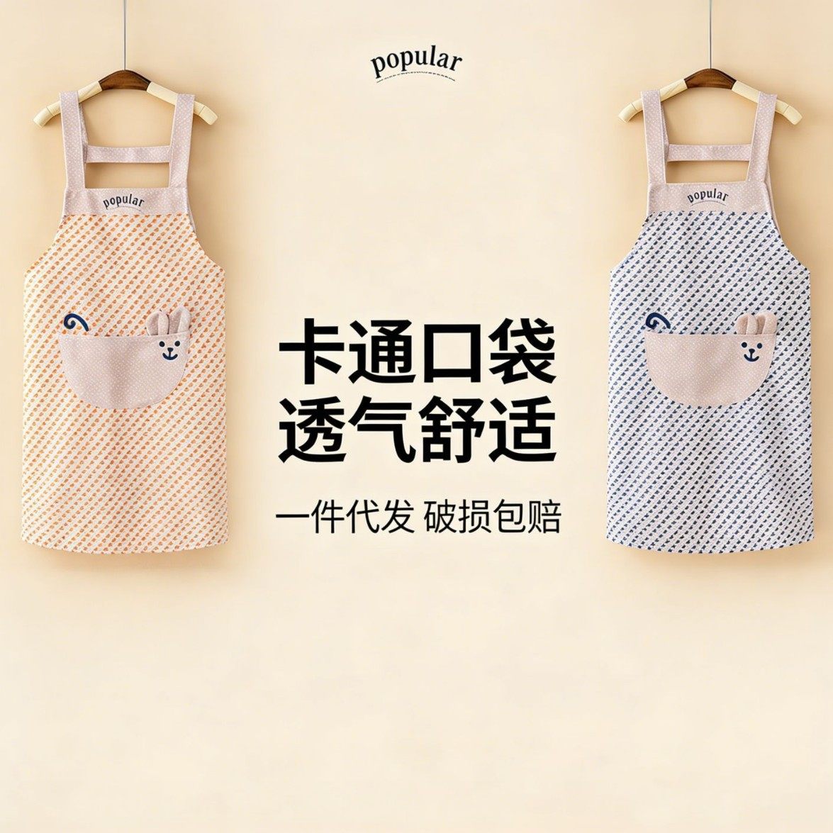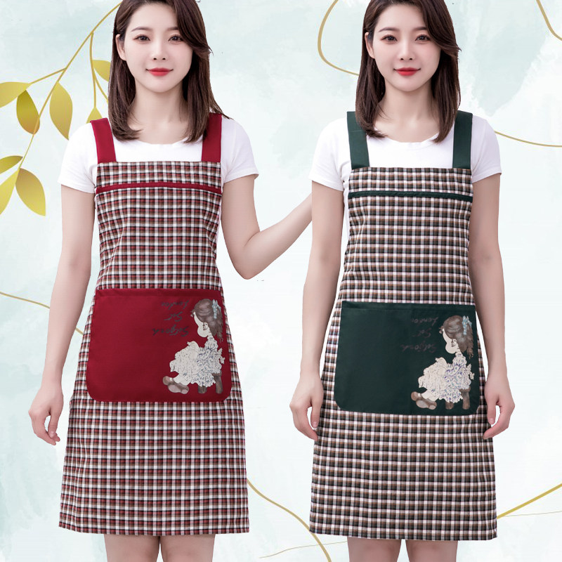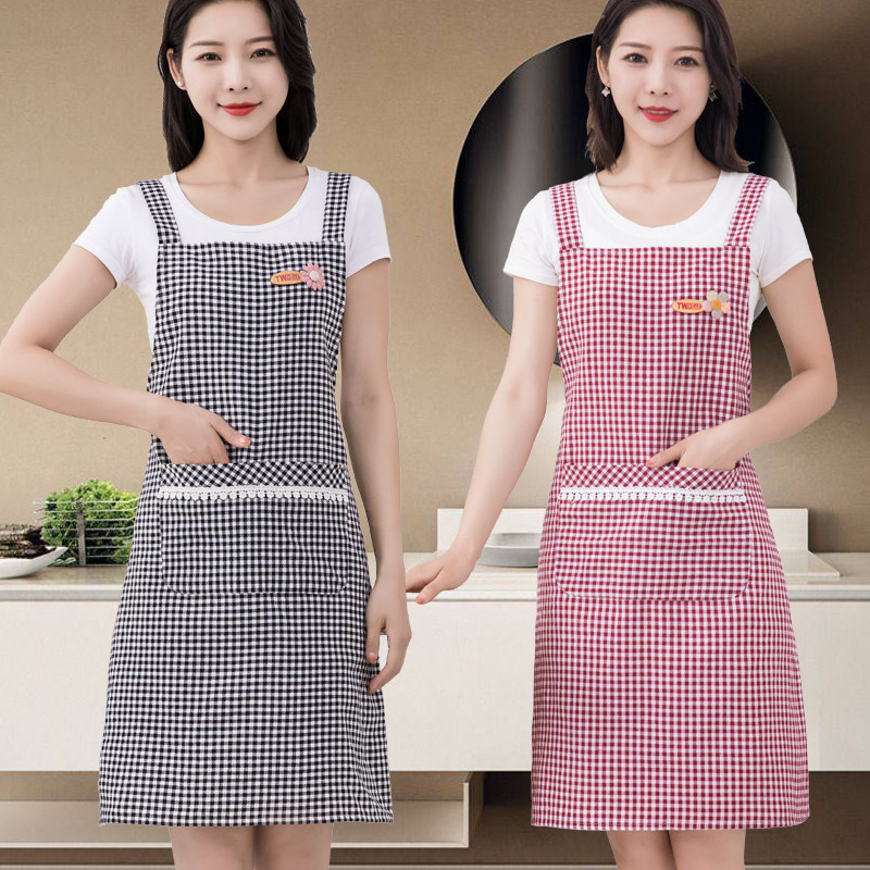 韩版女士时尚细纱棉布围裙家用厨房做饭新款洋气格子透气背带围腰