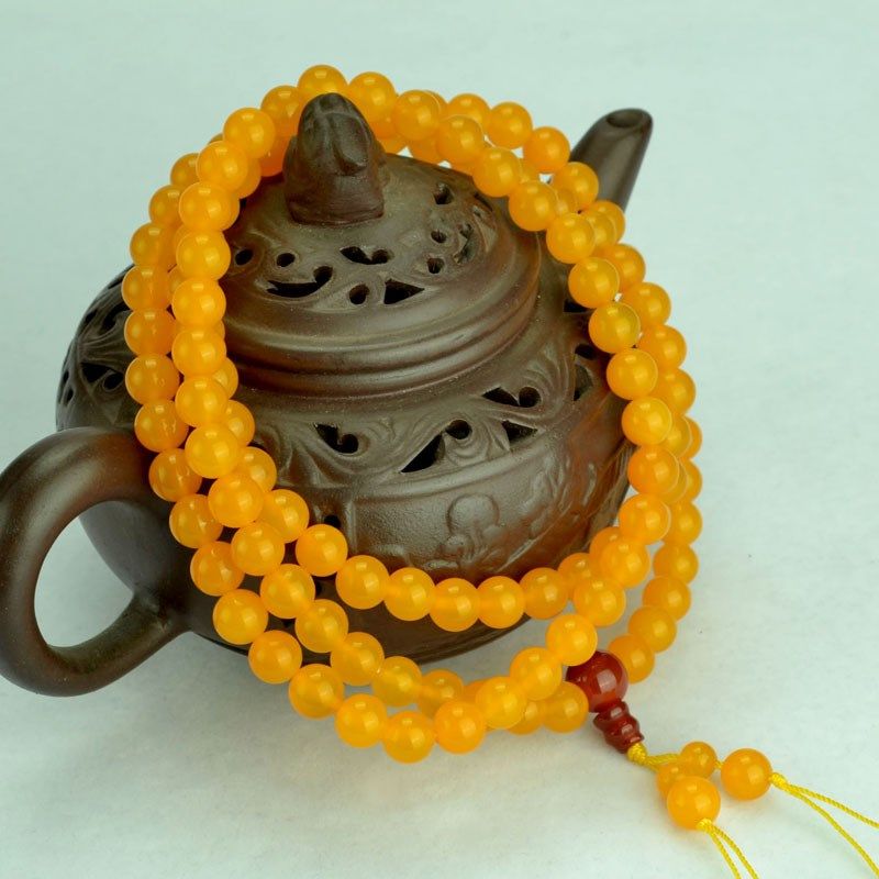 天然黄玉髓108颗佛珠手链 男女款多圈招财手串情侣水晶饰品项链
