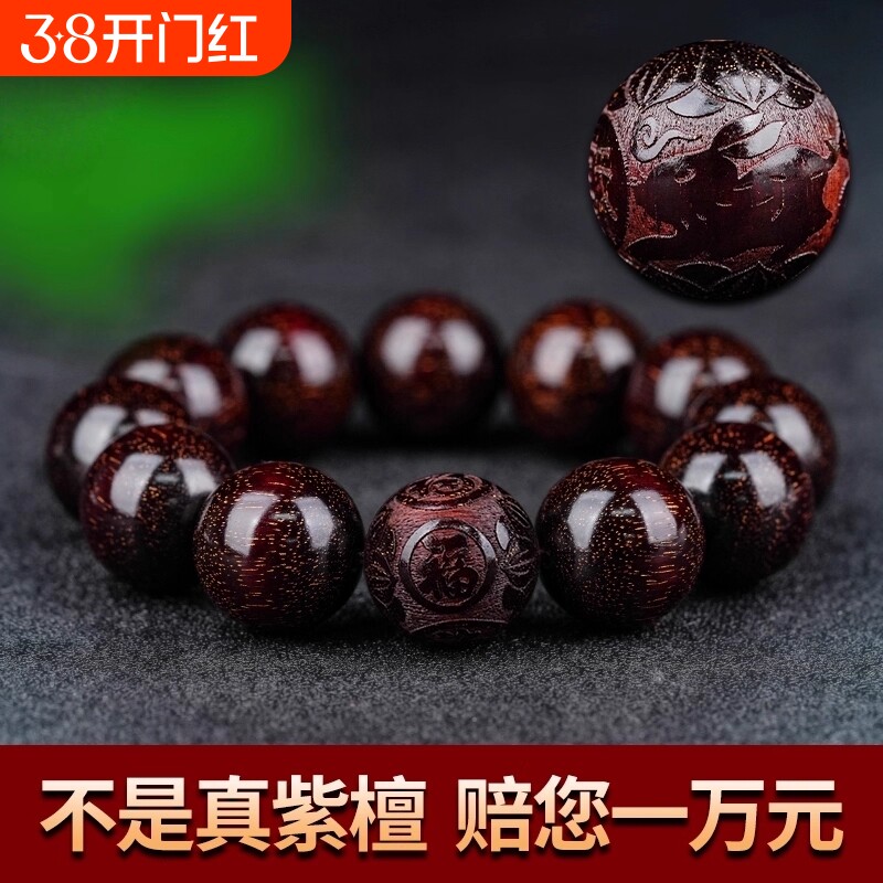 印度小叶紫檀手串佛珠男士檀香木十二生肖20文玩盘玩念珠手链老料