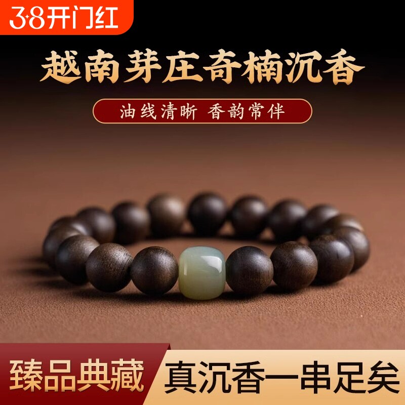 沉香手串男奇楠文玩木质手链真品盘玩佛珠蜜蜡珠子玉石和田玉非遗