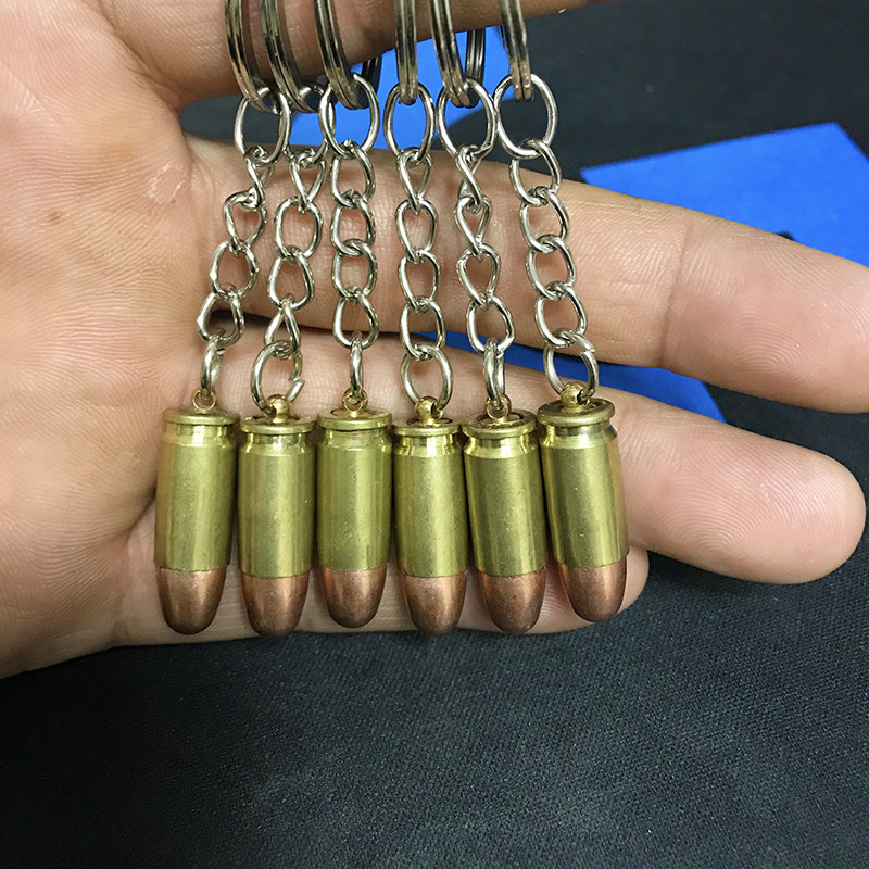 真子弹壳项链弹头吊坠钥匙扣9MM鲁格纯铜创意礼品老兵军迷收藏情