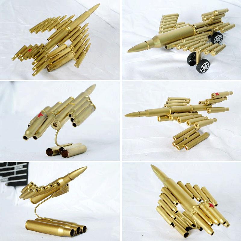 子弹壳工艺品弹壳子弹合金仿真金属铁艺飞机坦克大炮军事武器模型