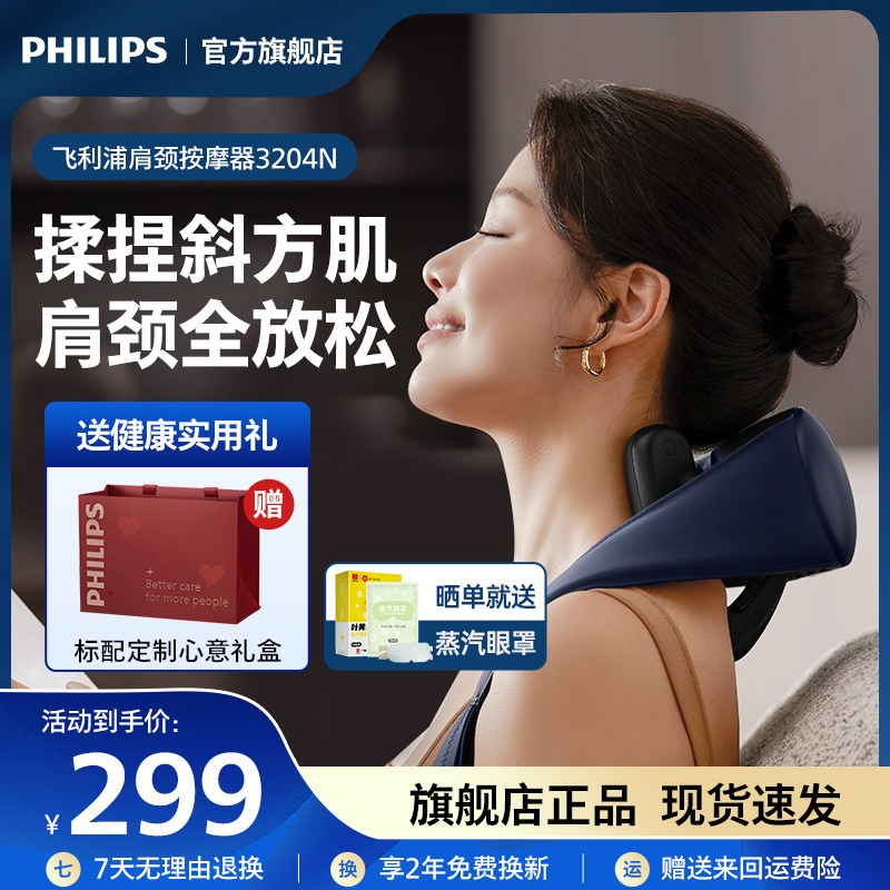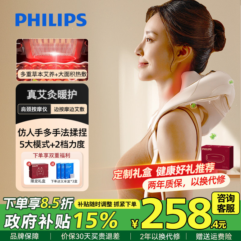 飞利浦小太阳肩颈按摩仪颈椎腰背部神器斜方肌艾灸披肩男女生礼物