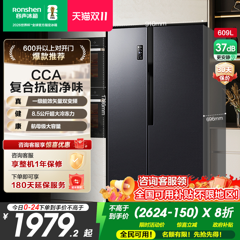 容声609L双开门冰箱家用大容量一级能效风冷无霜官方以旧换新补贴