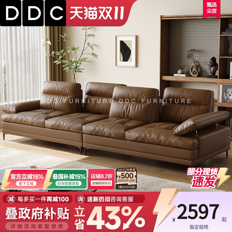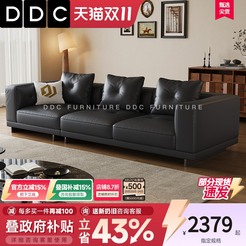 DDC意式极简迪兰dylan真皮沙发简约现代大小户型客厅直排皮艺沙发