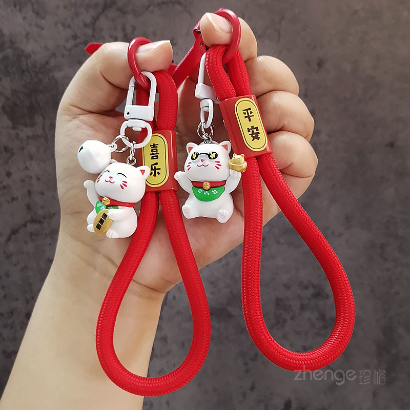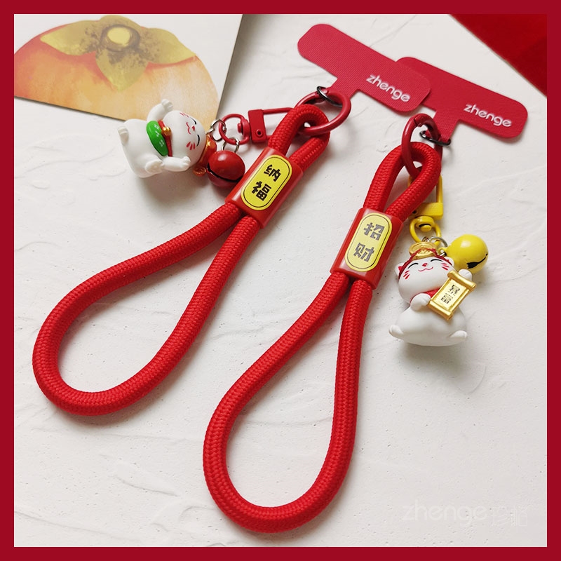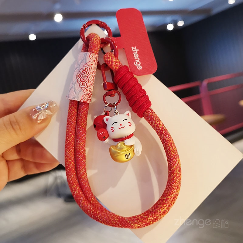 手机挂绳短款手腕带子ins新年招财猫吊坠可爱女户外链钥匙壳结实