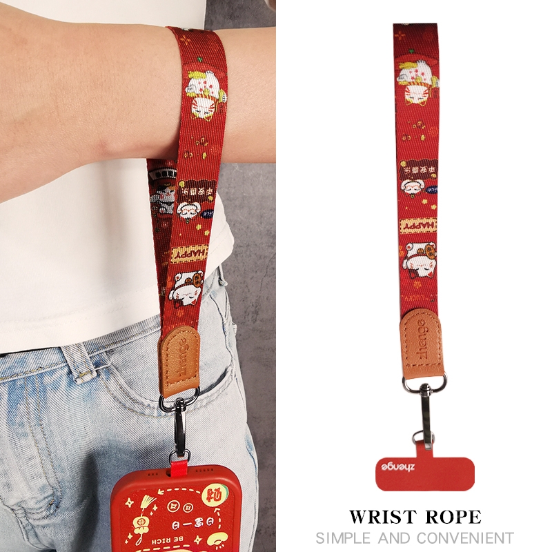 招财猫手腕手机挂绳ins新年风彩绘手绳男女短款宽版布带绳结实耐用户外出行旅游登山逛街防丢防盗手机壳挂绳