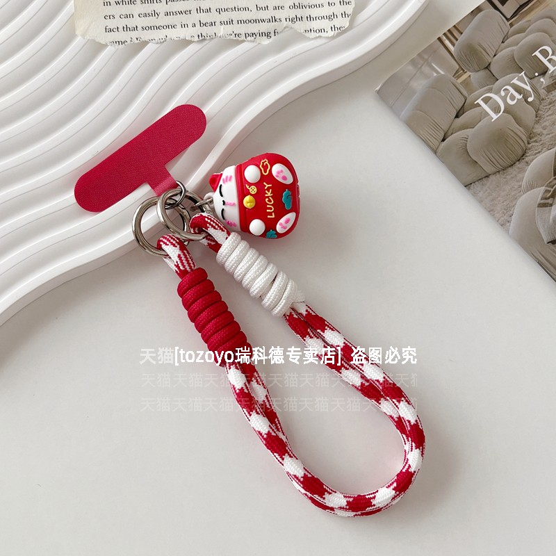 招财手腕绳女ins手机挂绳短款手提红绳手机挂饰招财猫挂件小吊坠情侣款礼物手绳夹片式手机壳通用吊绳手机绳
