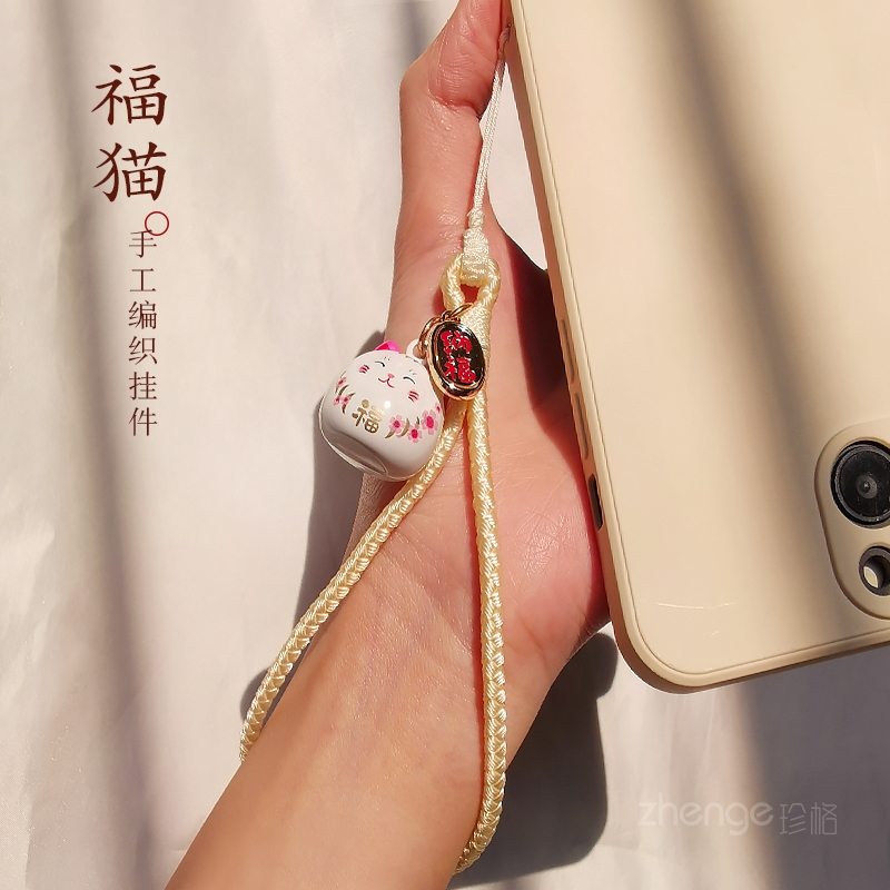 牧佳人精致招财猫手机挂绳防丢手腕绳挂链吊坠挂件可爱U盘挂饰短款防摔手机壳挂绳cdd相机绳子钥匙扣小挂件