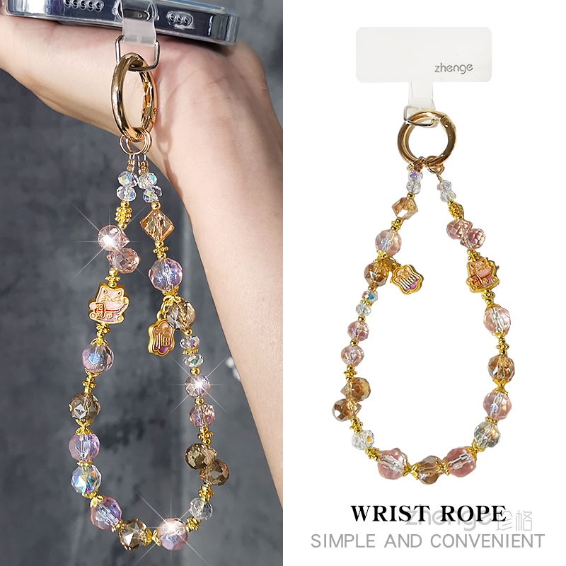 可爱招财猫水晶手机链ins女手腕挂饰手链短款手机壳串珠挂件户外旅游出行聚会逛街防丢防盗手提链手机挂绳新