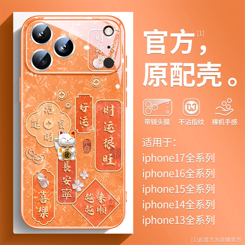 招财猫适用苹果17promax手机壳17pro星宇橙iphone16卡通男女15pro彩绘全包14网红文字13橙色plus挂绳12防摔套