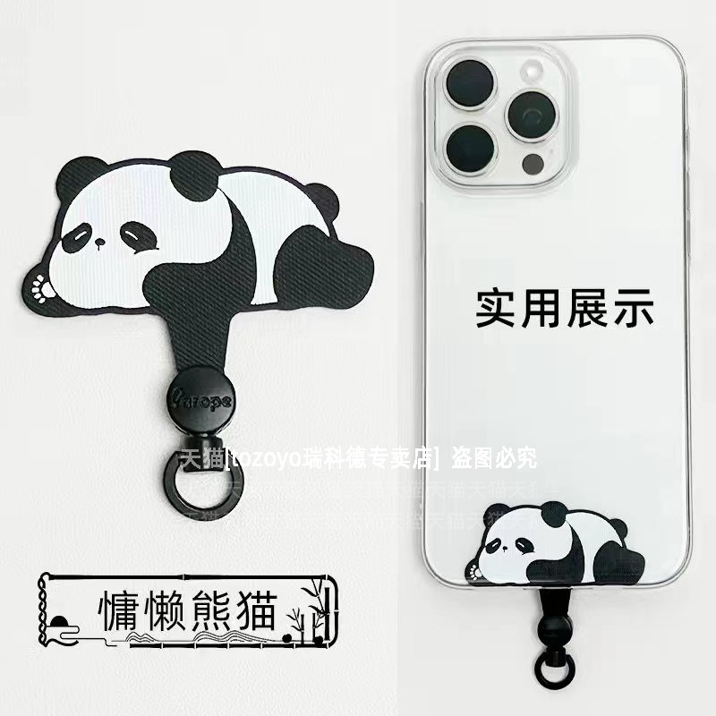 卡通手机夹片超薄可360度旋转金属扣布片垫片挂绳背贴黑白贴片固定卡片链条挂片可爱熊猫柯基狗招财猫挂件壳