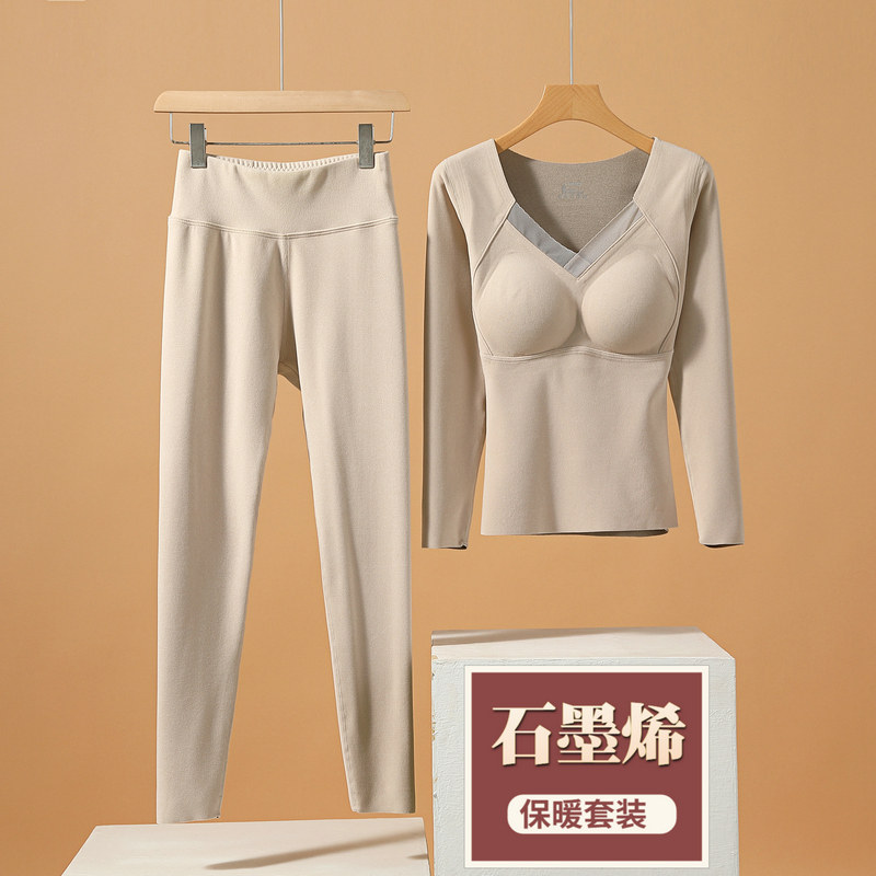 德绒石墨烯保暖内衣冬季套装女士带胸垫内穿秋衣秋裤加绒加厚发热