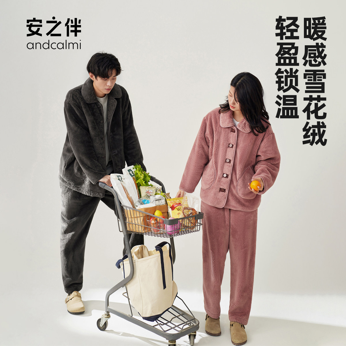 淳度半边绒情侣睡衣女秋冬季加厚加绒大码家居服男套装休闲可外穿