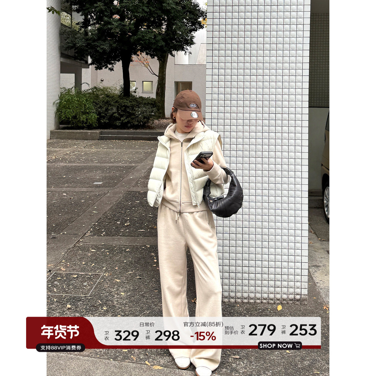 YANGLE_冬季套装女2025新款韩系羊绒桑蚕丝连帽卫衣拖地直筒卫裤