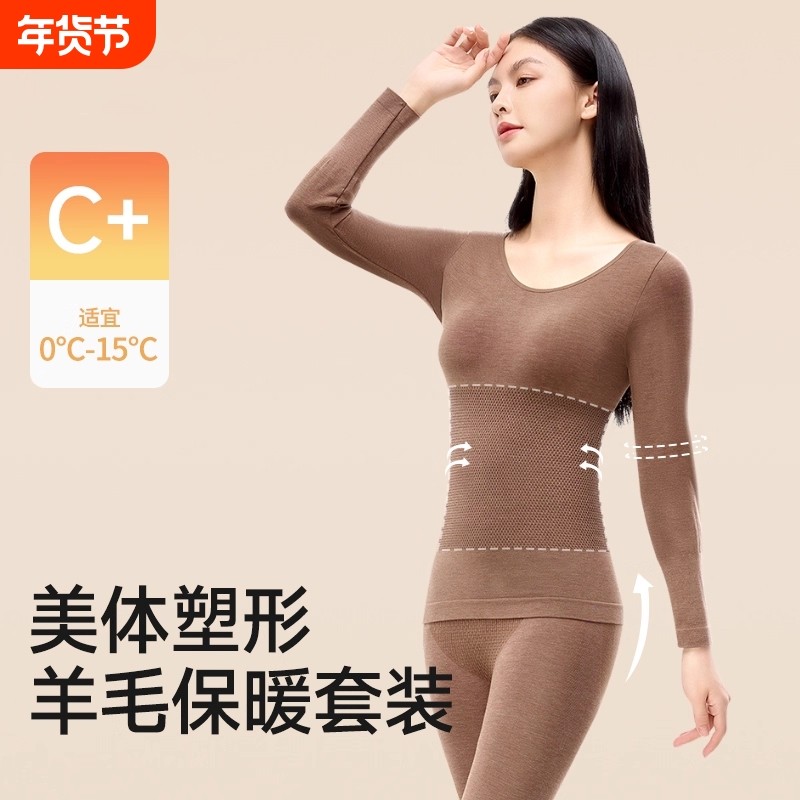 保暖内衣女秋衣秋裤修身显瘦羊毛发热美体打底衫秋冬季套装女内搭