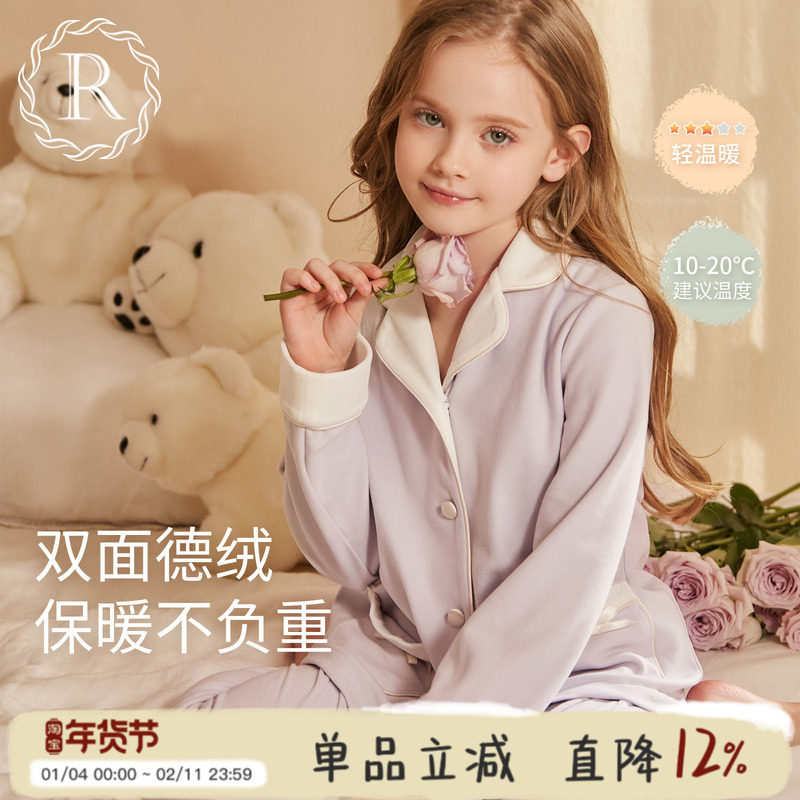 RoseTree儿童德绒家居服女童珊瑚绒冬季套装女孩大童春秋加绒睡衣