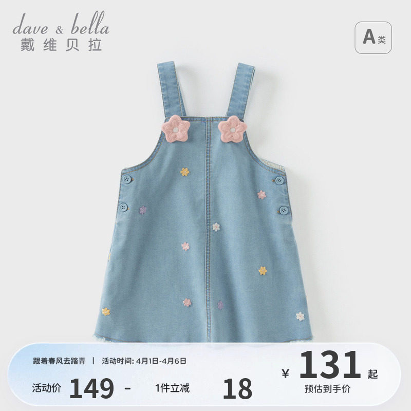 戴维贝拉儿童牛仔背带裙2026春装新款女童宝宝甜美裙子连衣裙童装