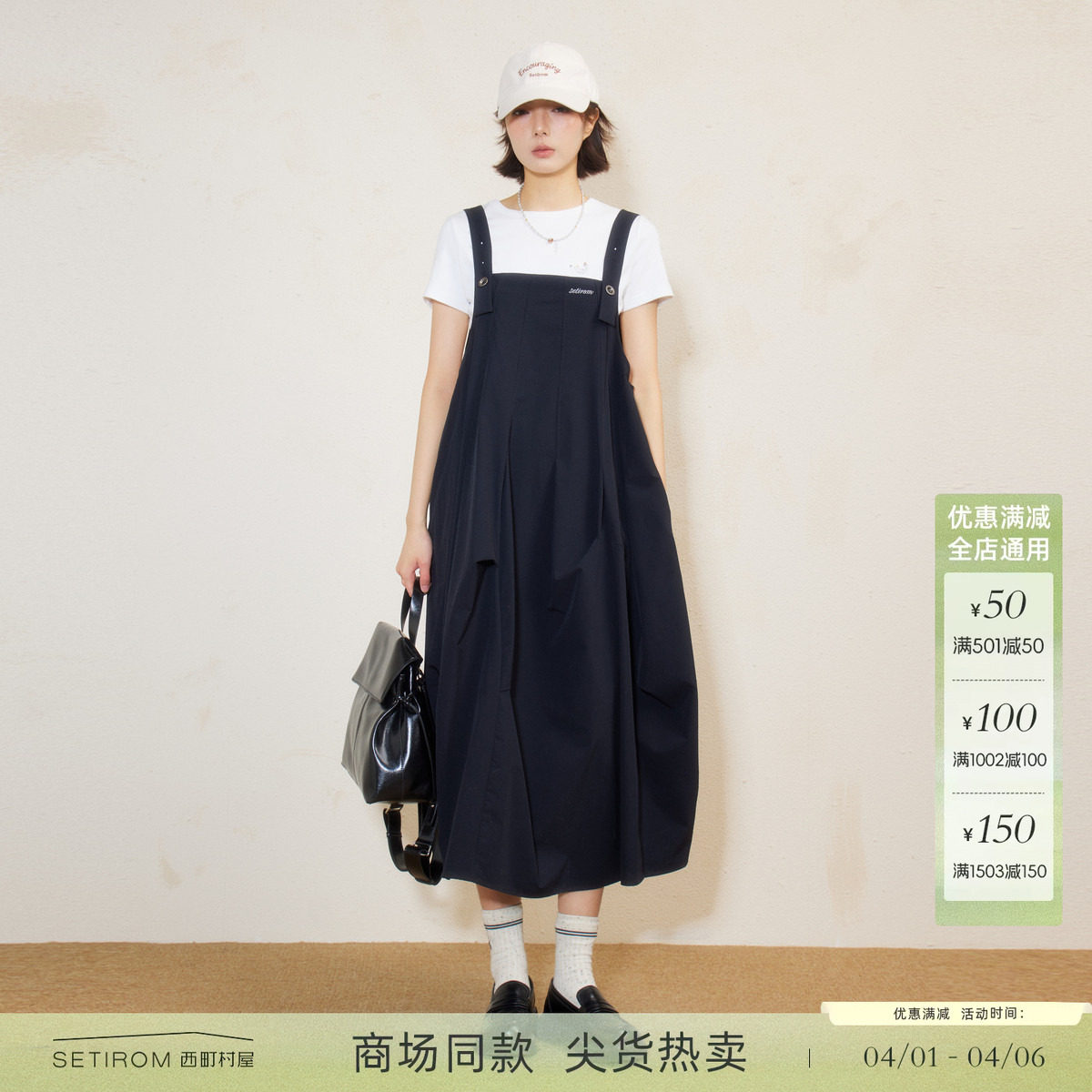 西町村屋设计感背带裙女2026春新款休闲时尚都市感长裙XHBA10963