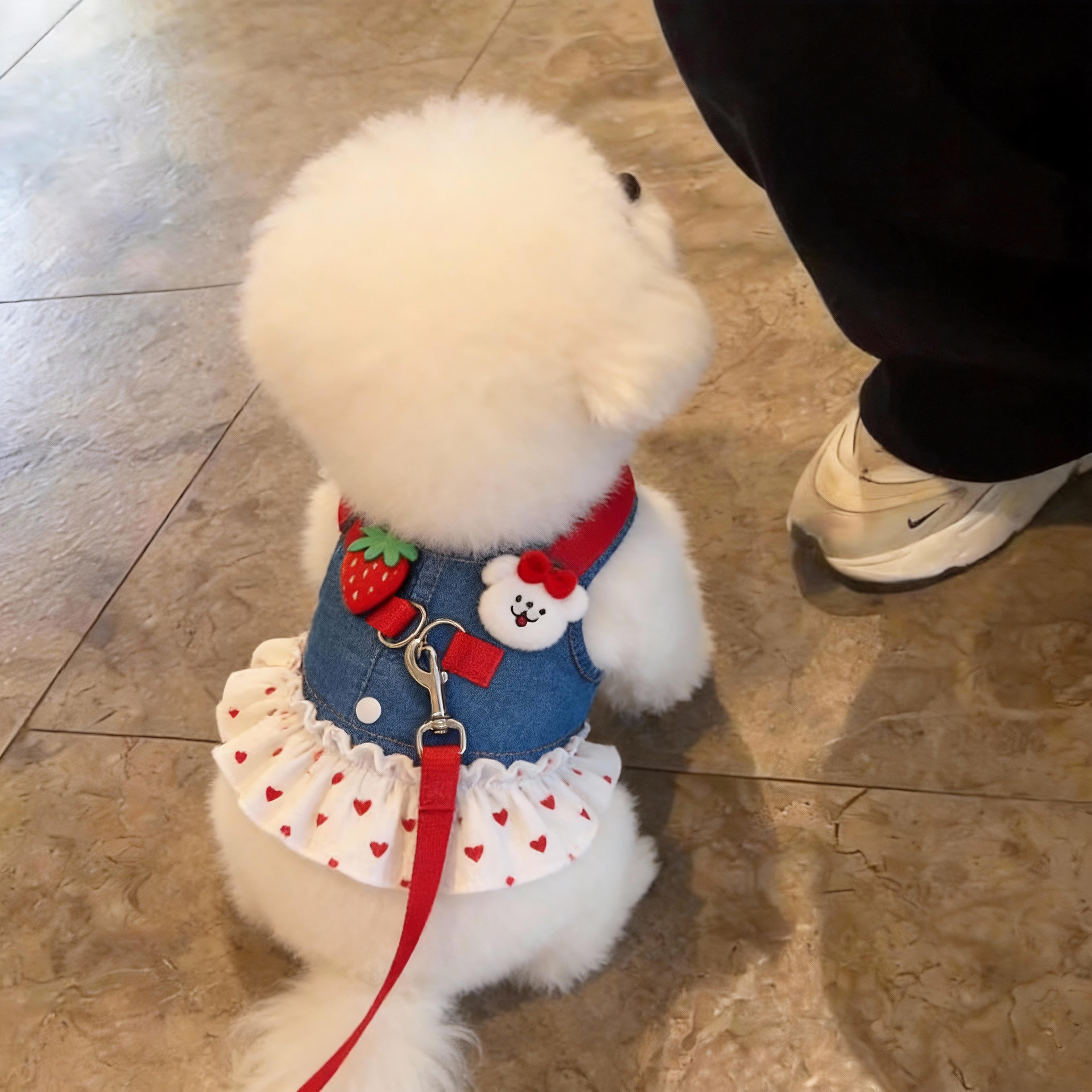 狗狗牵引衣服春秋外出专用牛仔小裙子泰迪比熊胸背带夏季遛狗绳子
