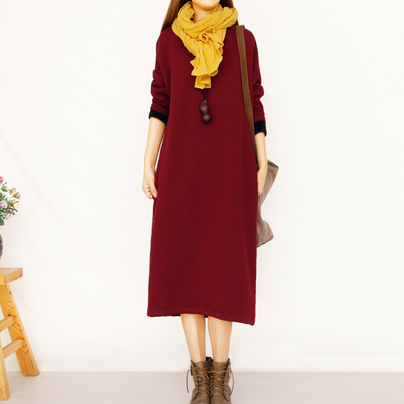 复古文艺连衣裙女秋冬季加绒长袖宽松显瘦长裙子气质过膝衬衫打底