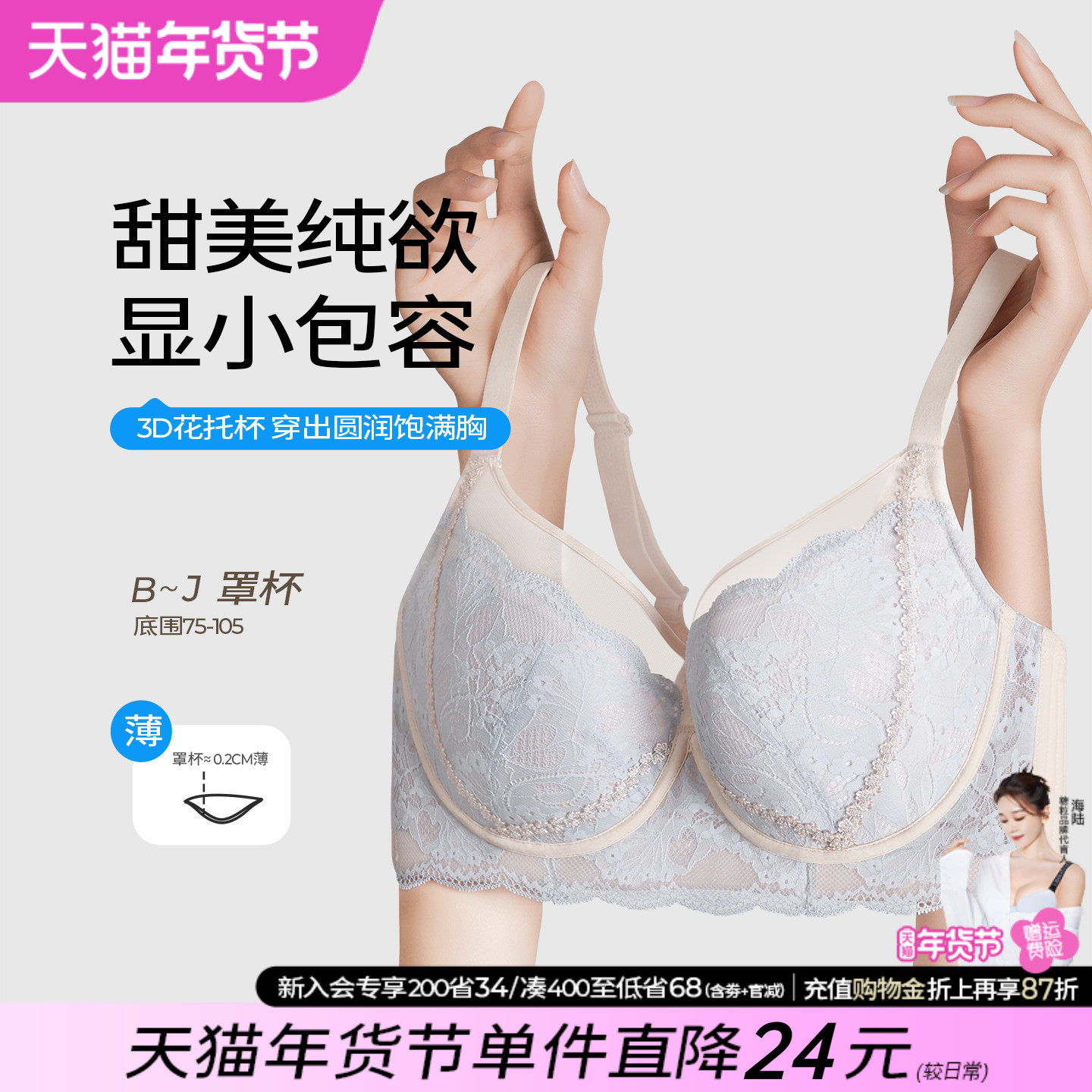 好奇蜜斯大胸显小胸内衣女性感夏薄防下垂法式纯欲蕾丝文胸罩套装