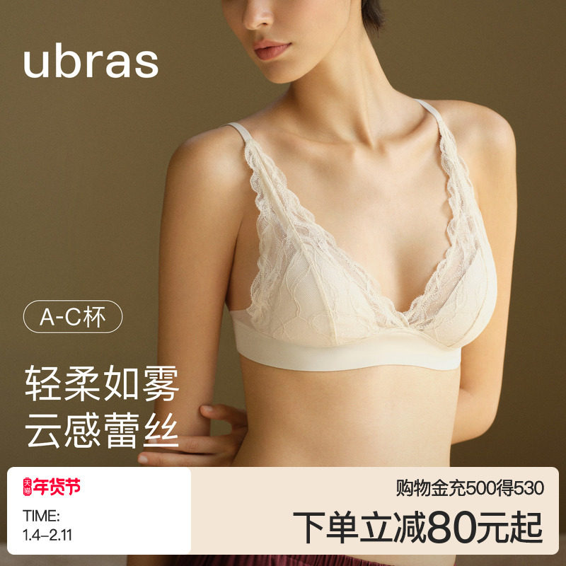 ubras蕾丝法式内衣女性感纯欲长三角深V小胸穿搭背心无钢圈文胸罩