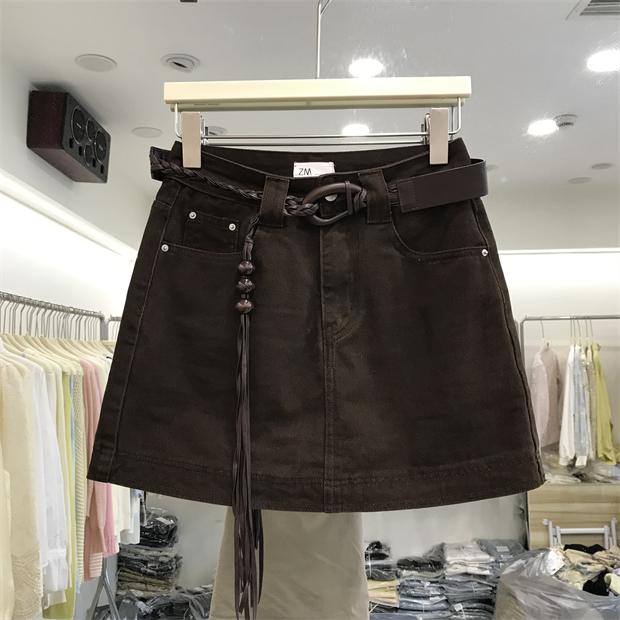 韩版2025新款咖色显白牛仔短裙女时尚百搭高腰显瘦a字半身裙